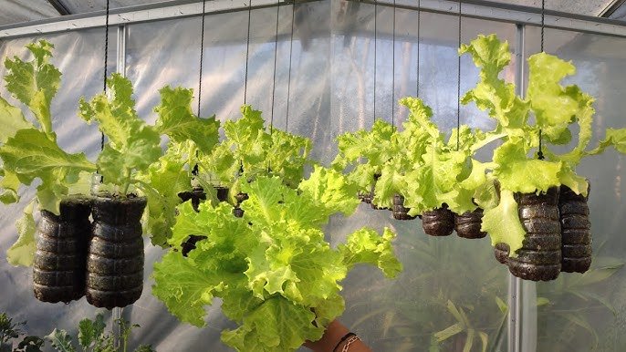 Using hanging plastic bottles for gardening is one of the most sustainable and practical ways to grow fresh food at home. Iceberg lettuce, with its shallow roots and compact growth habit, is perfectly suited for this type of container system.