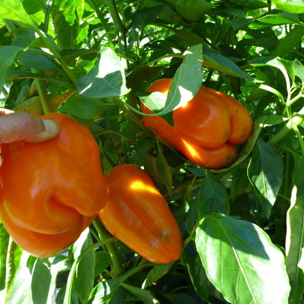 The Orange Sun Pepper is a large, blocky bell pepper variety that matures from green to a deep, glowing orange when fully ripe. It’s prized for its: