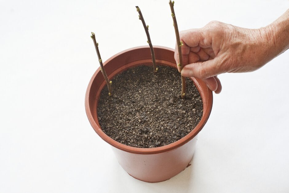 Once your cuttings are well-rooted (usually by late spring), they’re ready to move into larger pots or directly into the garden.